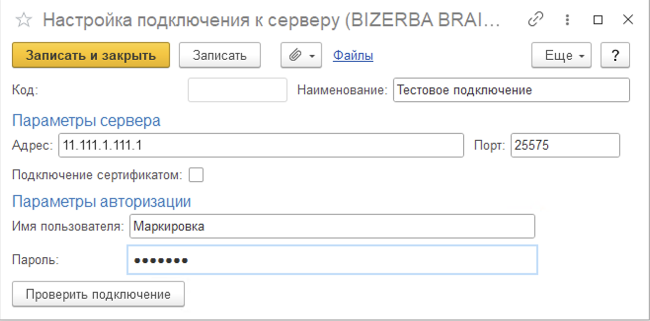 После заполнения данных есть возможность проверить подключение нажатием на кнопку "Проверить подключение".