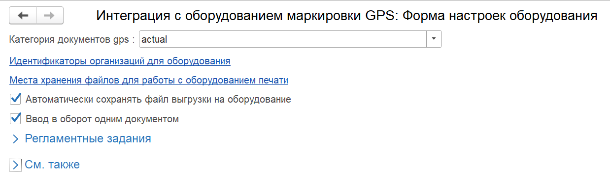 - Автоматически загружать отчеты с оборудования - после того как файл получен с оборудования, в папку загрузки помещается файл об успешном/неуспешном прочтении. При включение данного рег. задания обработка таких файлов происходит автоматически. Результат обработки файлов можно посмотреть в РС "Статусы заданий на маркировку на оборудовании". Ссылка на регистр расположена в пункте См. также в обработке "Интеграция с оборудованием"