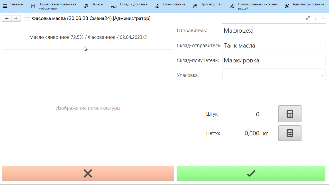 Пропорционально остаткам - Списывается каждая партия остатка вспомогательного материала на складе-отправителе. Общее нормативное количество списания материала распределяется между партиями пропорционально количеству их остатка на складе-отправителеСценарии работы Разрешить выпуск побочной продукции Включает/отключает выпуск из выбранного материала не только основной продукции, но еще и побочки (пример - выпуск сливок, обрата из молока помимо смеси) Разрешить выпуск в упаковках Позволяет указывать объем выпуска в упаковках (с автоматическим пересчетом на штуки) Указывать пакеты Применяется, когда выпускаемая продукция упаковывается еще и в пакеты Учет остатков по таре Ставится, когда продукция выпускается на таре и дальше прослеживается в разрезе этой тары В разрезе контейнеров - если у тары нет фиксированного номера, а каждый раз присваивается новый