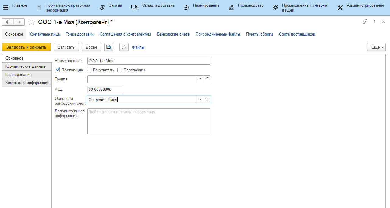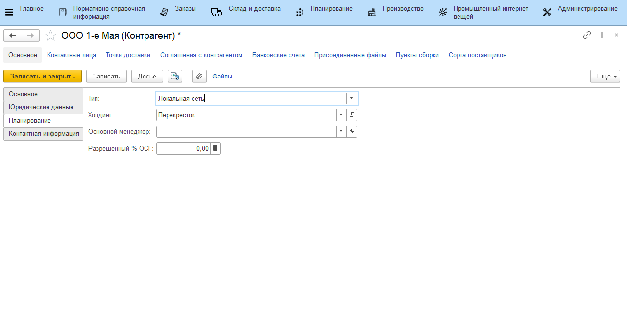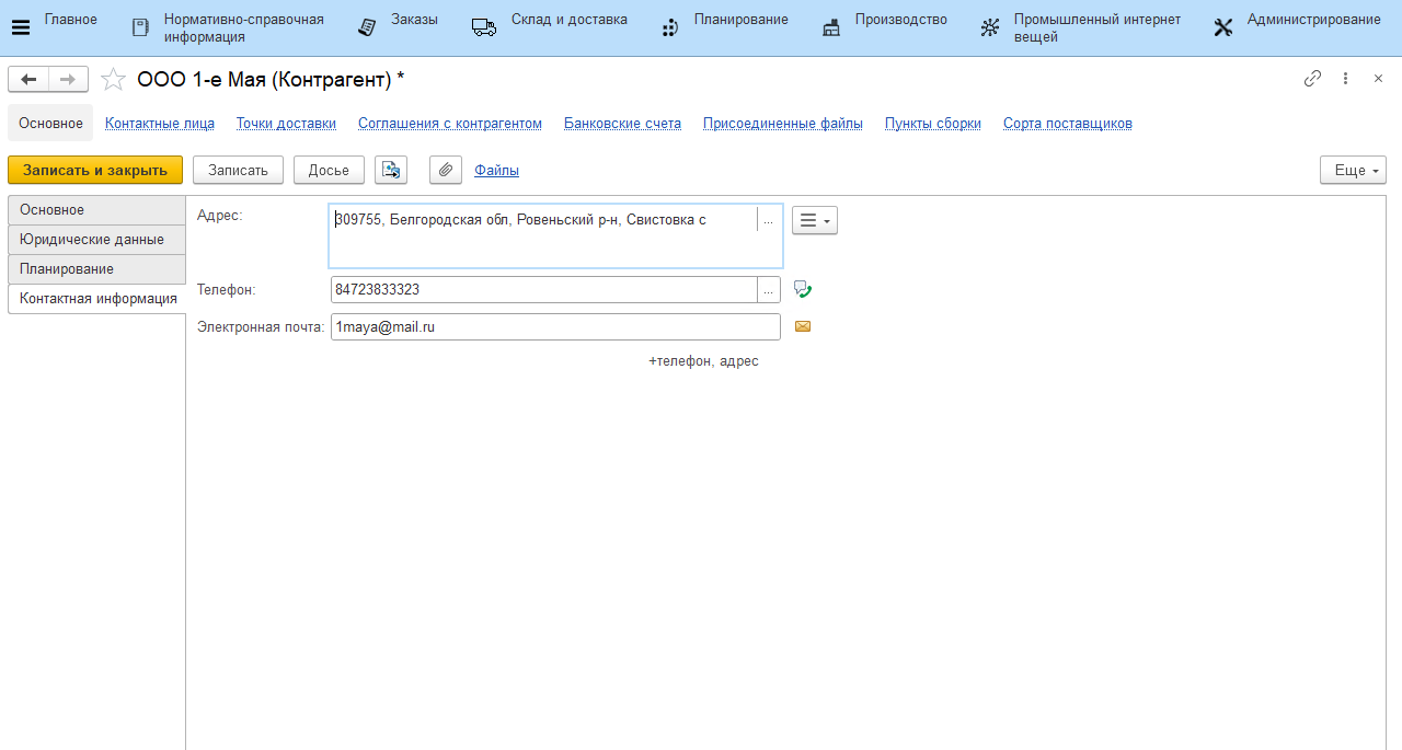 Справочник "Контрагенты" содержит информацию обо всех клиентах компании.