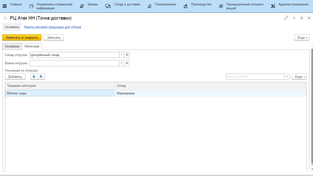 - Уточнения по отгрузке (можно уточнять склад отгрузки для товарной категории)