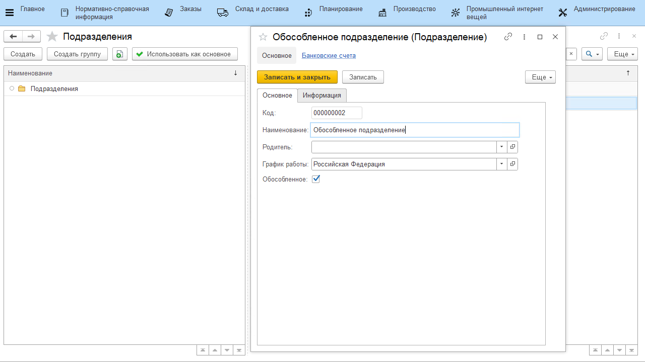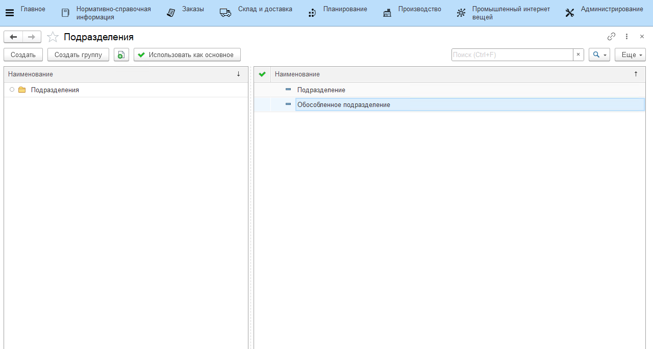 Справочник "Подразделения" предназначен для хранения списков подразделений.
