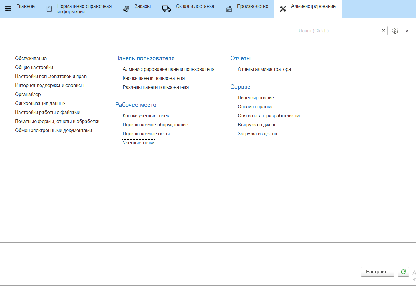 Порядок отображения кнопок в меню учетных точек можно менять с помощью стрелочек.