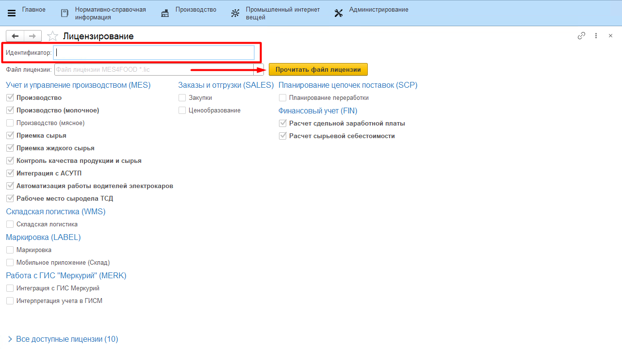 Далее указывается идентификатор, по кнопке "Прочитать файл лицензии" выбирается файл лицензирования, который вам должны были предоставить вместе с идентификатором.