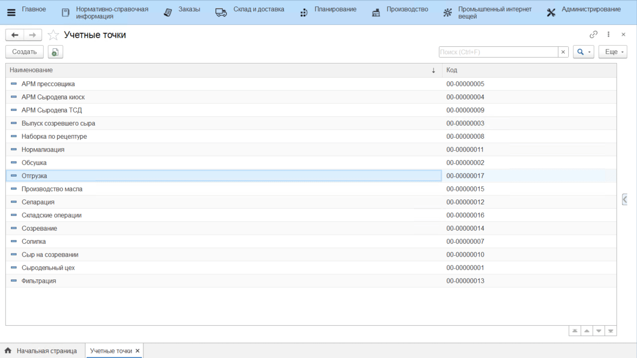 - Открыть справочник "Учетные точки". Среди списка найти нужную и открыть;