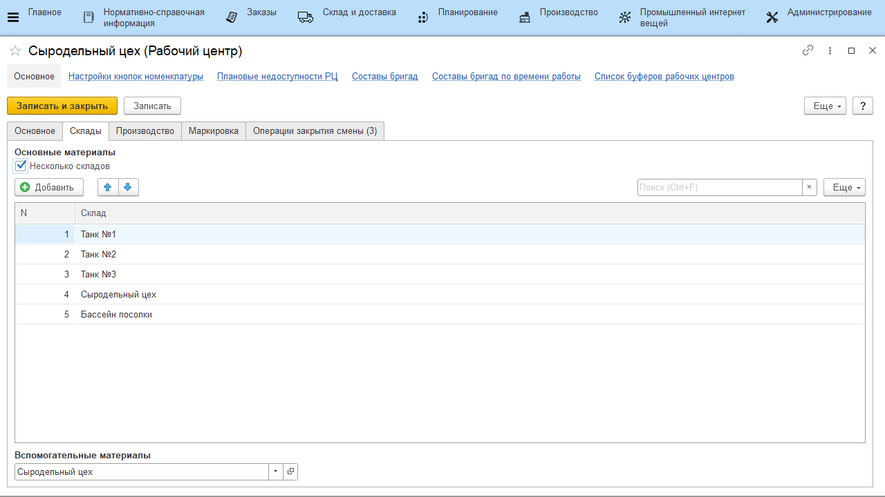- Списать усушку - при закрытии смены со склада(-ов) рабочего центра спишутся остатки основных материалов, которые в течение дня тратились на выпуски;