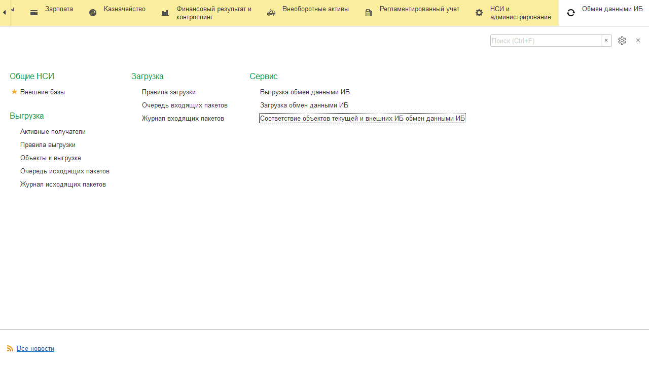 По кнопке "Заполнить по данным ВИБ" форма заполняется объектами внешней ИБ, каждому объекту можно задать соответствие из объектов базы-получателя.