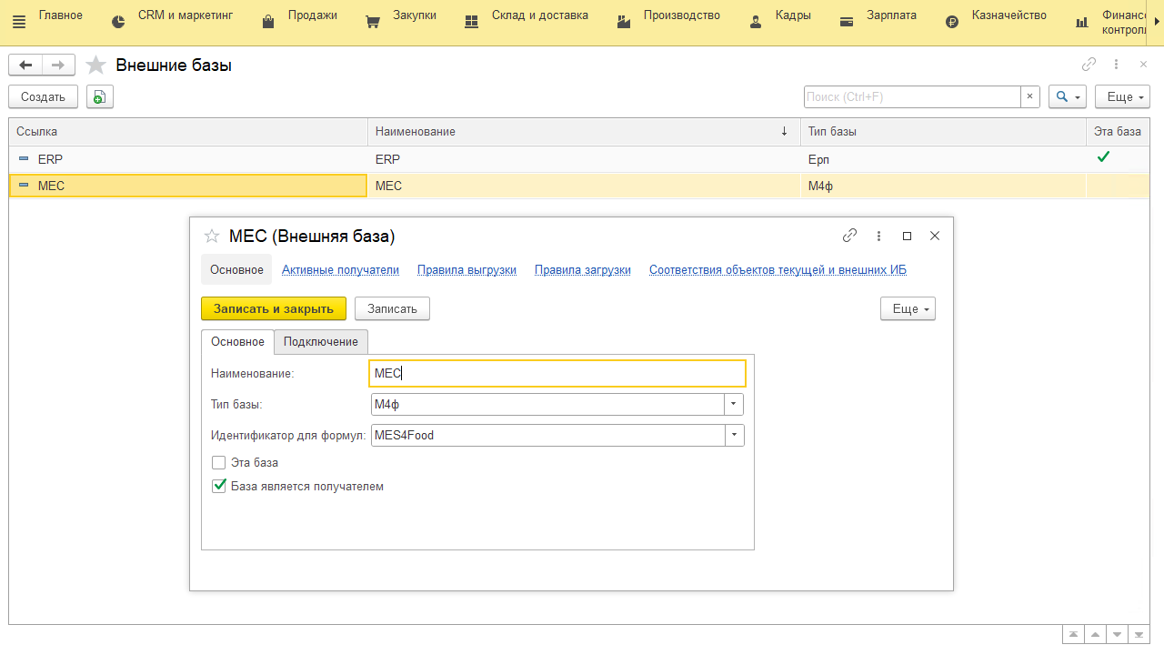 Сопоставление c подразделениями в MES4FOOD по наименованию.
