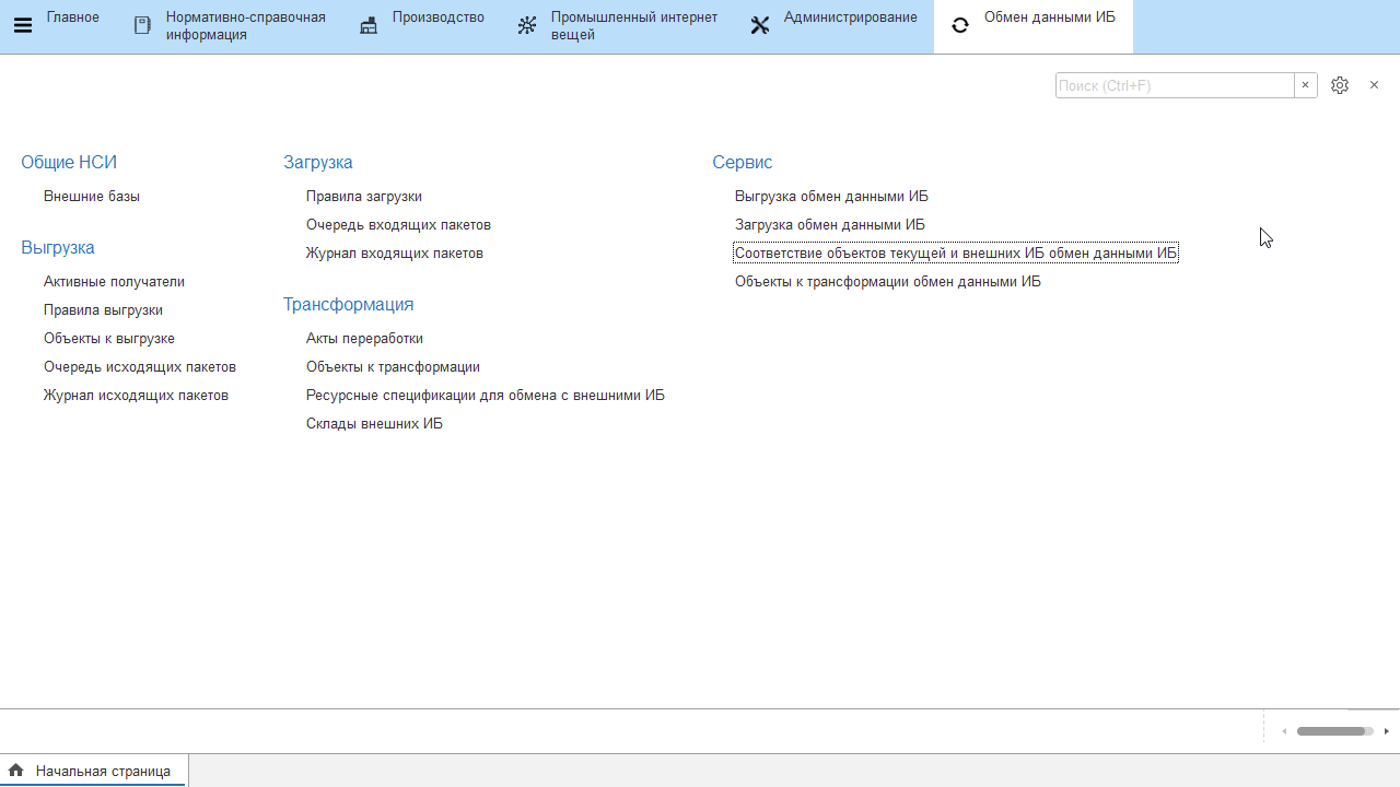 По кнопке "Заполнить по данным ВИБ" форма заполняется объектами внешней ИБ, каждому объекту можно задать соответствие из объектов базы-получателя.