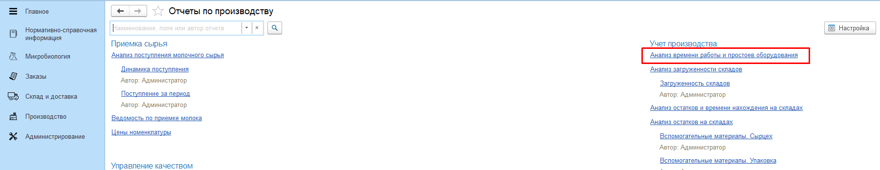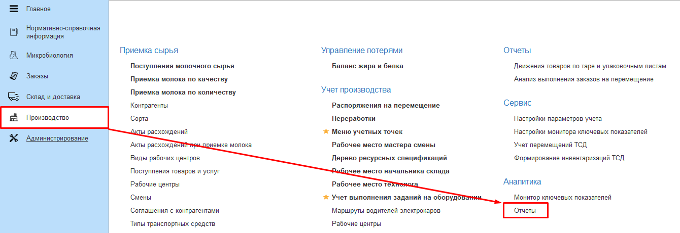 Отчет находится в подсистеме Производство - Аналитика - Отчеты.