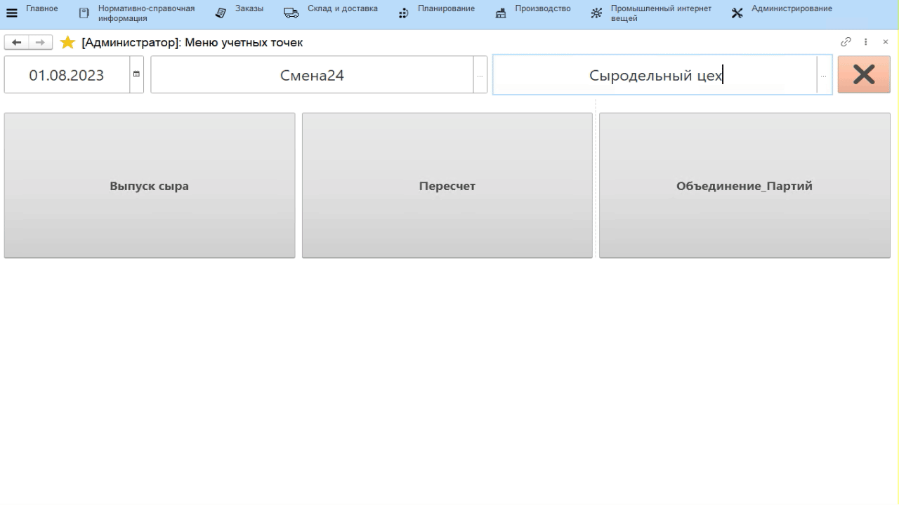 Учет извлечения сыра из бассейна и его упаковки в системе происходит через учетную точку, привязанную к участку, где сыр извлекается из солилки и передается на созревание.