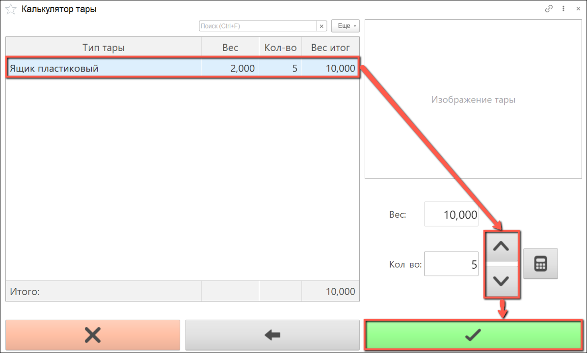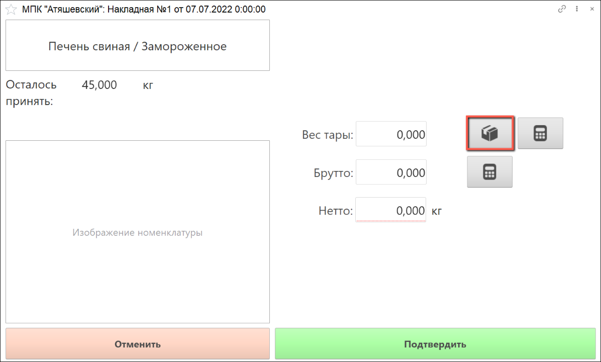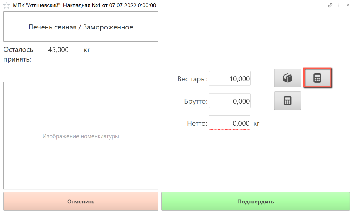 - Также вес тары можно ввести вручную. Для этого нужно нажать на кнопку калькулятора справа: