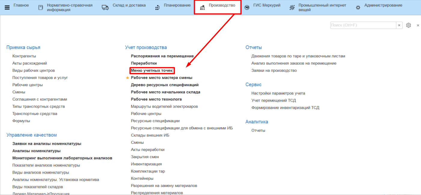 - Открываем "Меню учетных точек":