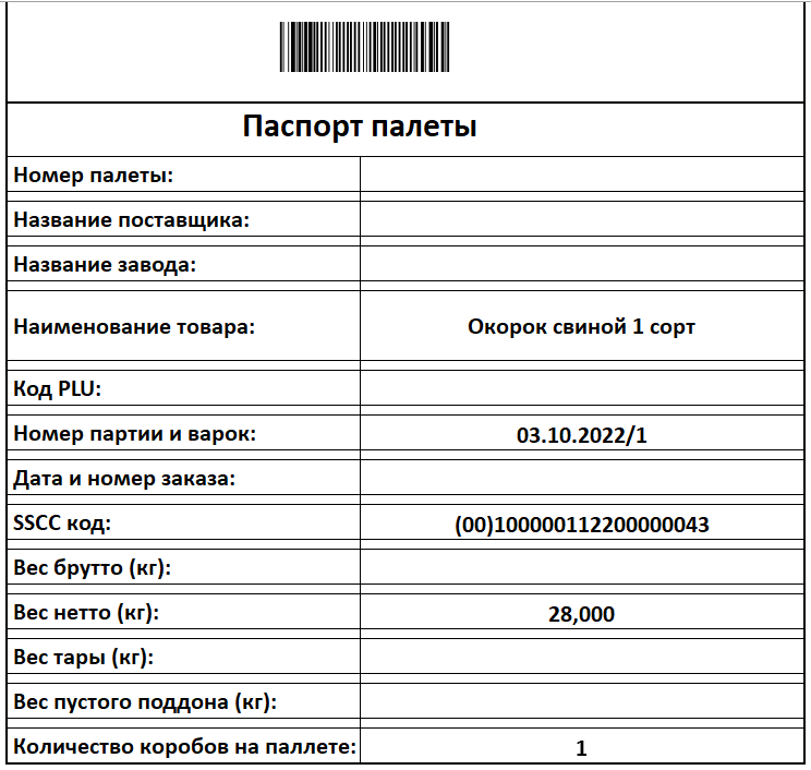 - После подтверждения взвешивания печатается этикетка партии сырья и паспорт паллеты: