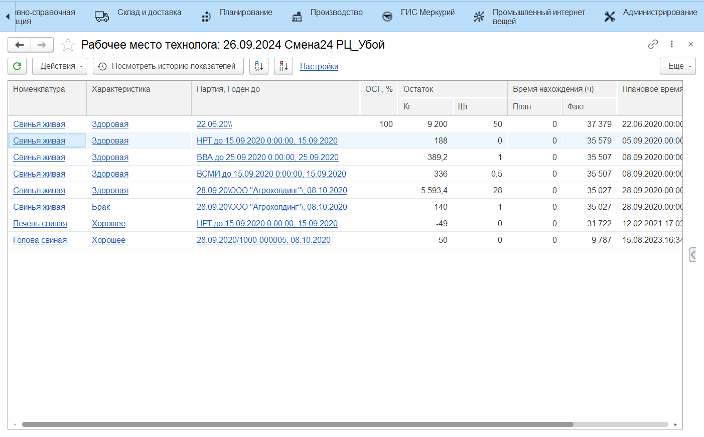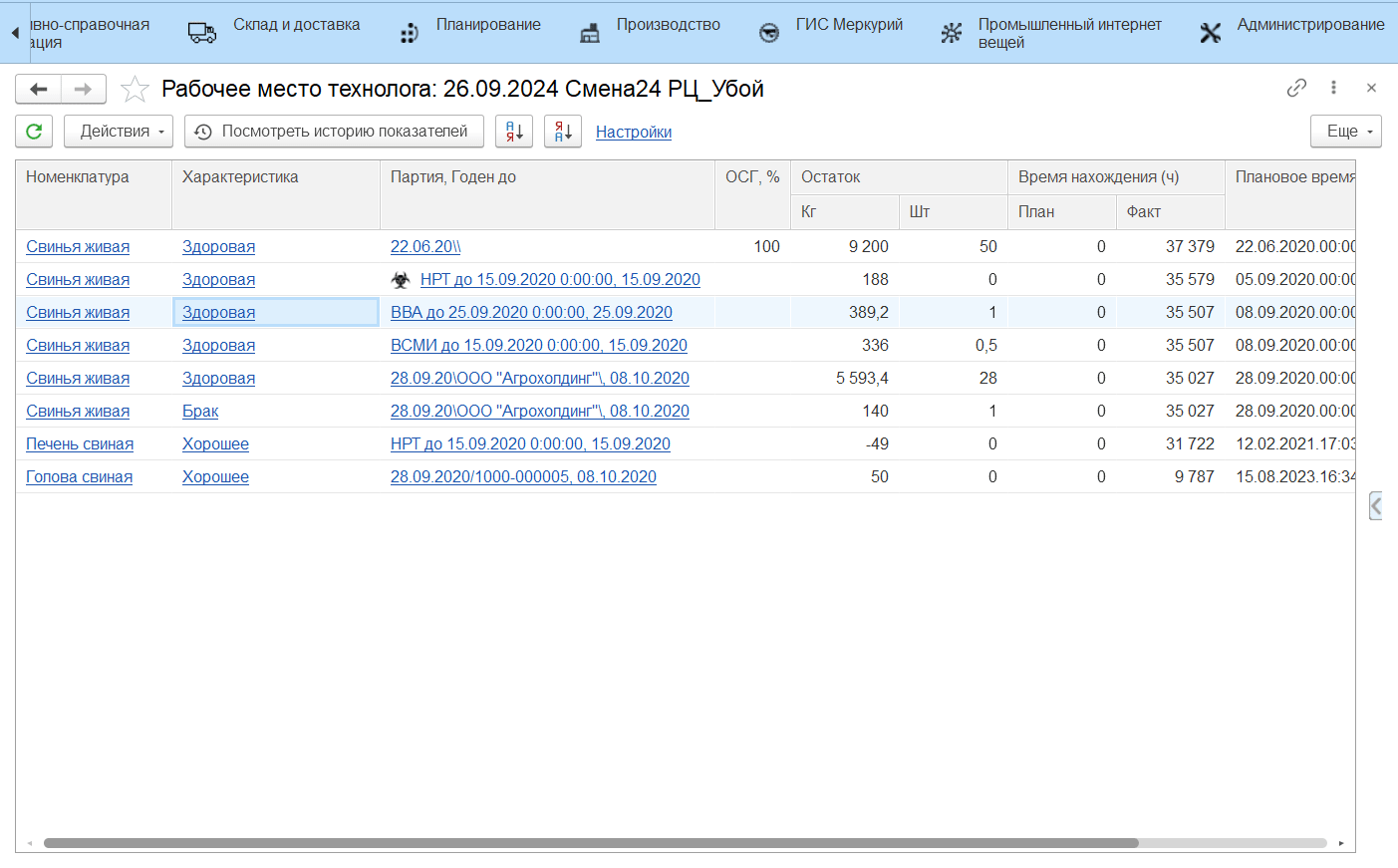 Для постановки на карантин необходимо выбрать партию остатка, затем в меню "Действия" нажать "Поместить на карантин". При этом формируется документ "Помещение на карантин".