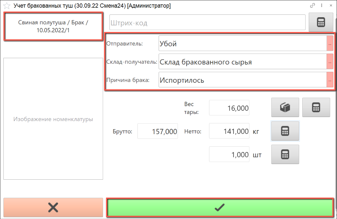Учет бракованных туш
