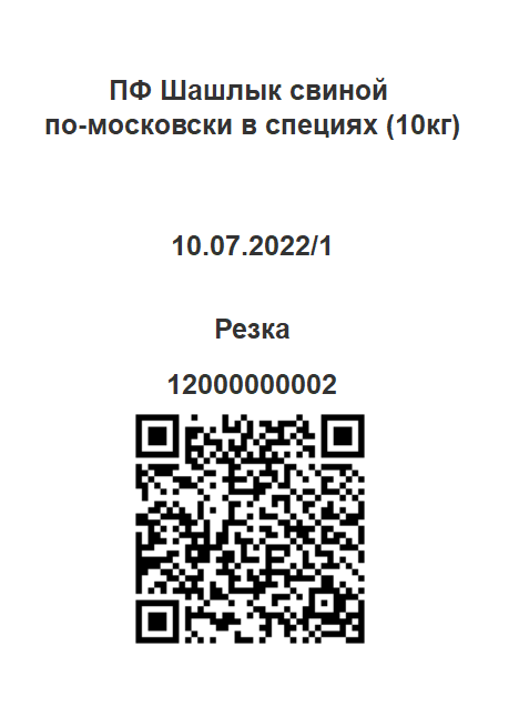 - По окончании взвешивания распечатывается этикетка партии нарезанного комплекта: