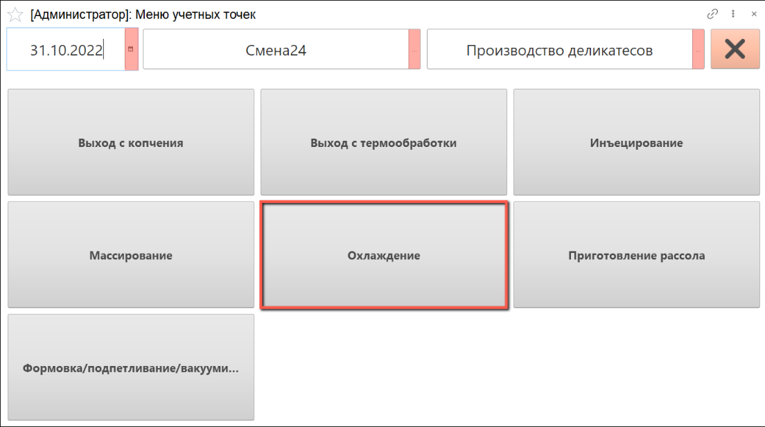- Номенклатура сырья для охлаждения уже выбрана в АРМ.