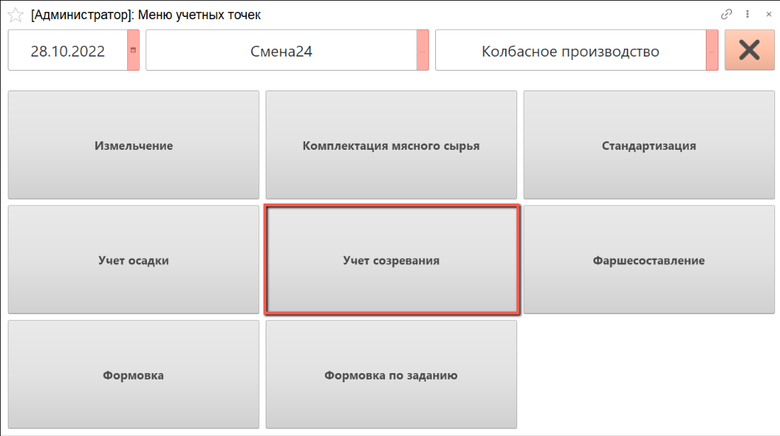 Указываем дату смены, смену и рабочий участок, на котором будет выполняться учет созревания.
