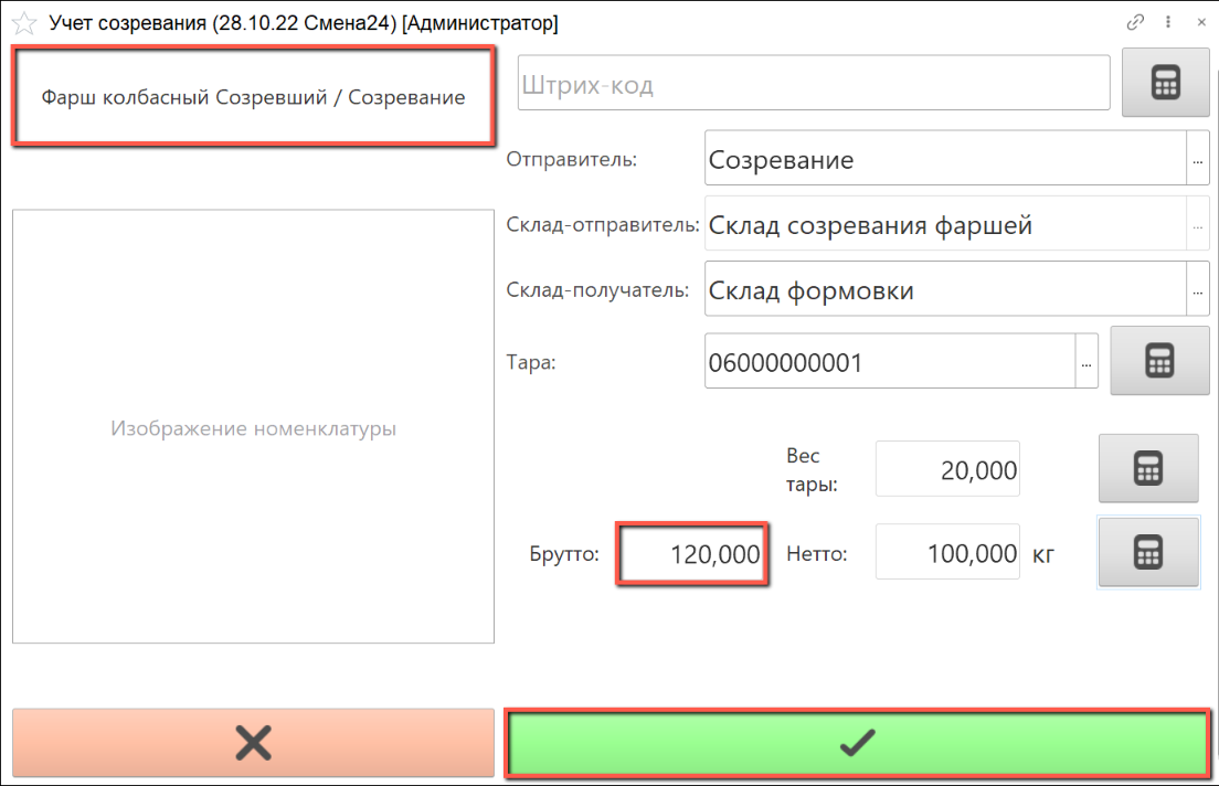 Учет созревания фарша и массированного сырья ведется аналогичным образом в камере созревания.