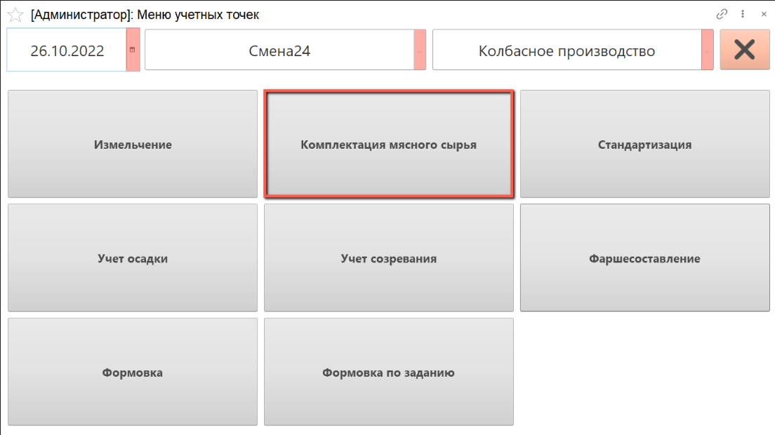 Нажимаем на кнопку "Комплектация мясного сырья":