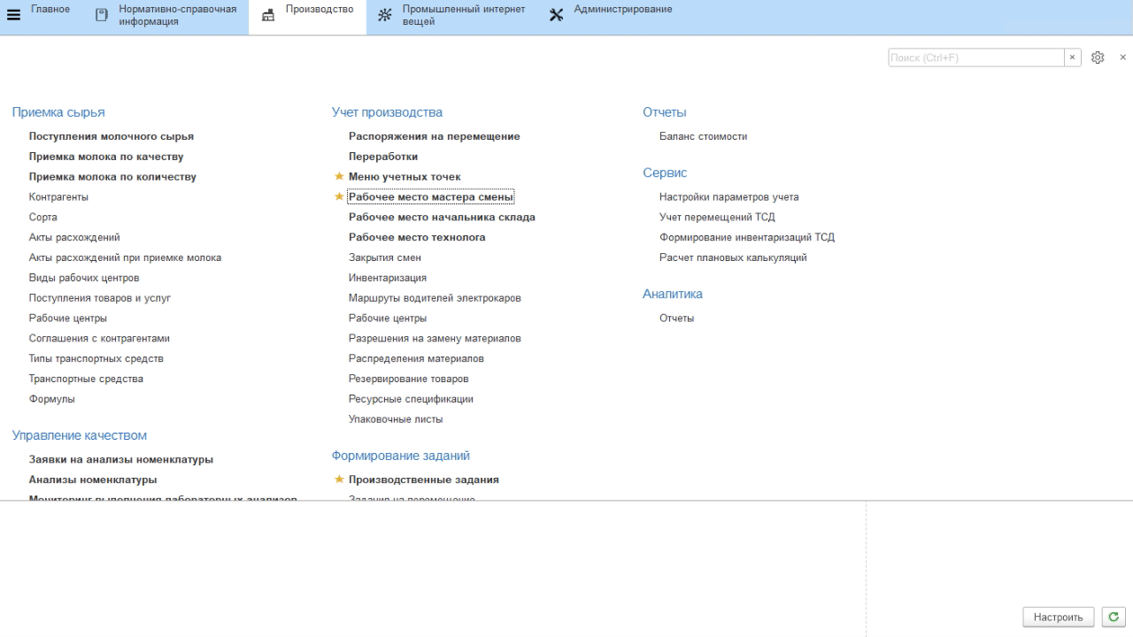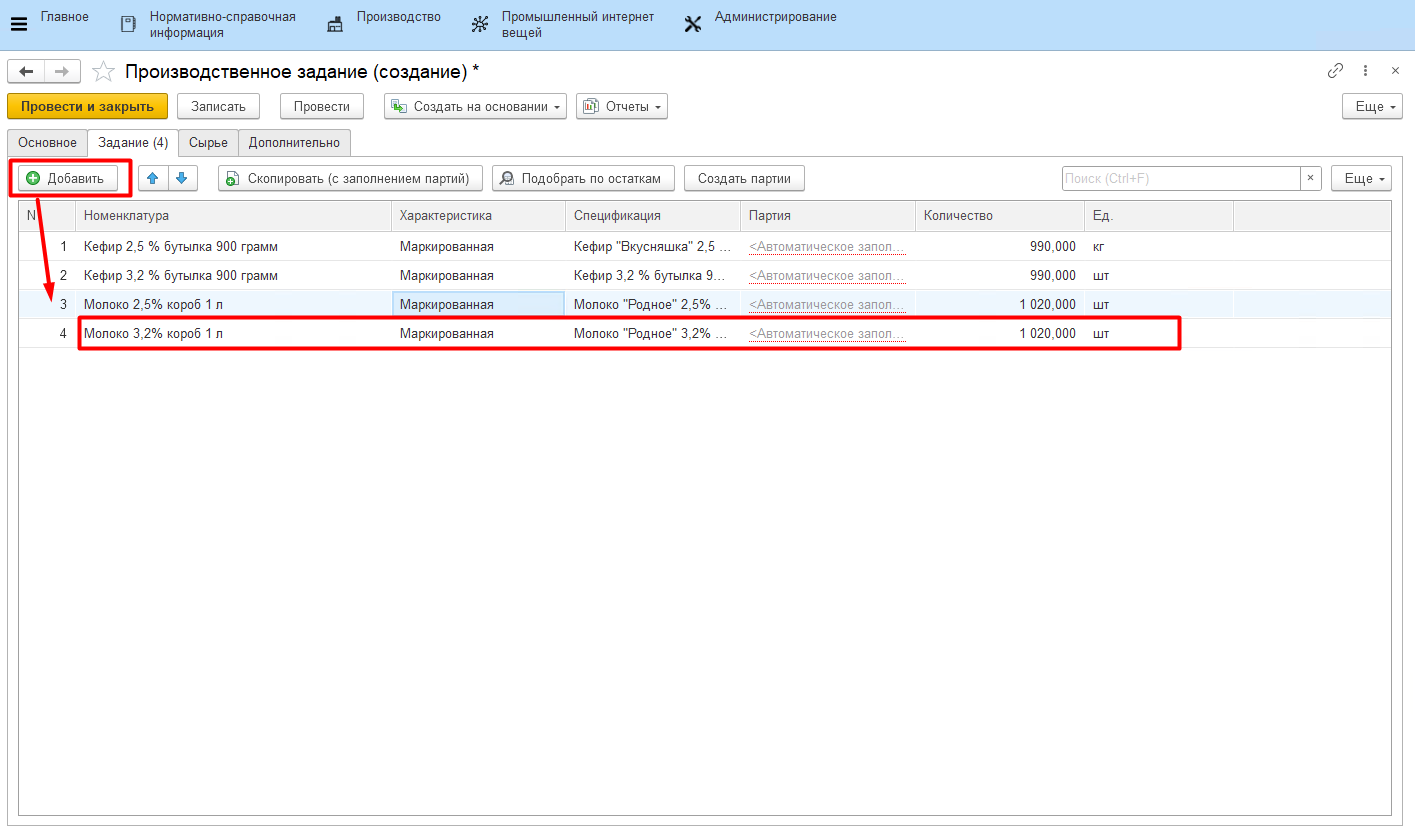 В начале каждой смены мастер выдает работникам задание на розлив полуфабрикатов. В системе это отражается документом "Производственное задание".