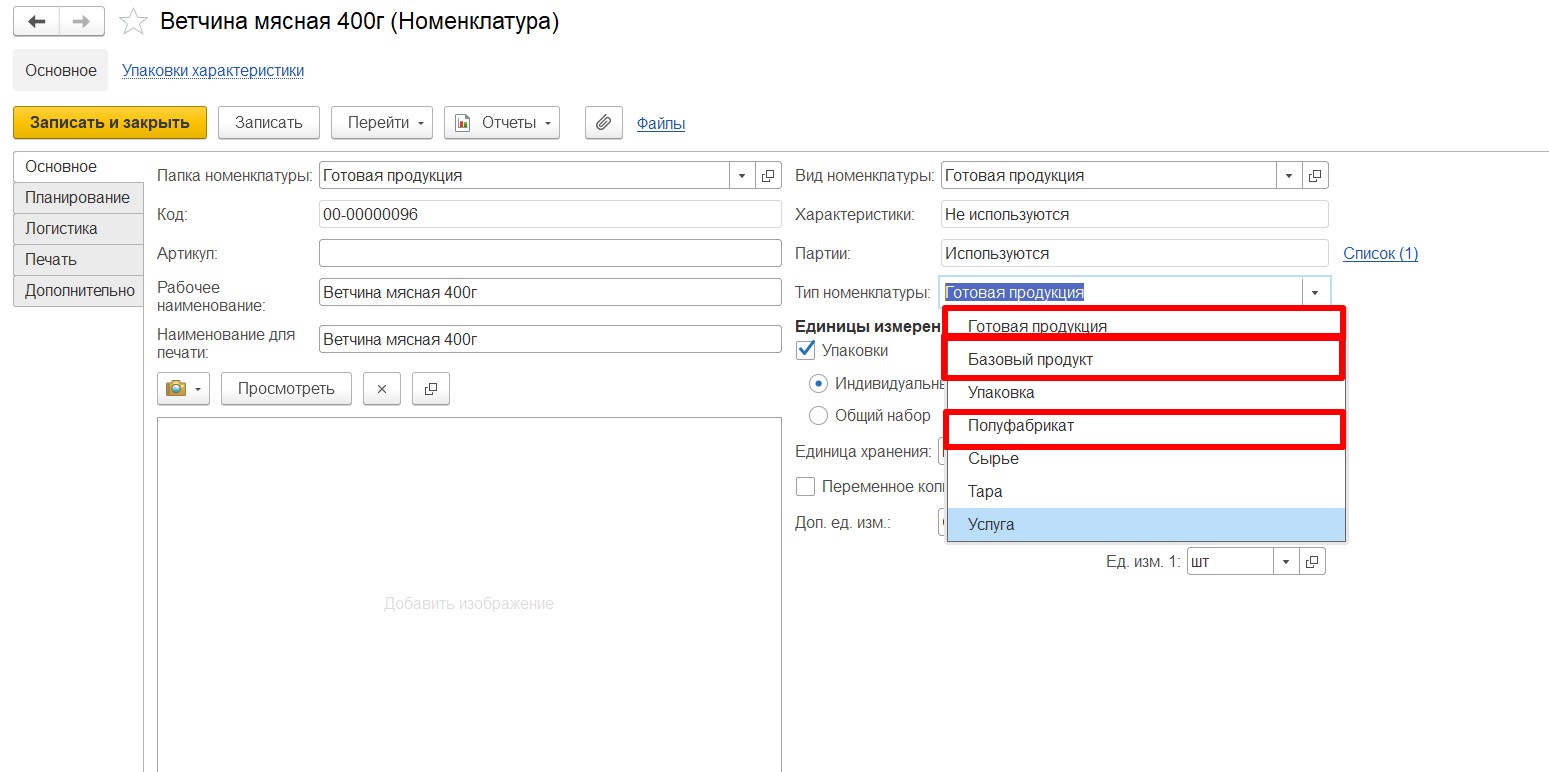 Для корректного отображения номенклатурных позиций в дереве плана необходимо в самой номенклатуре правильно указать тип номенклатуры.