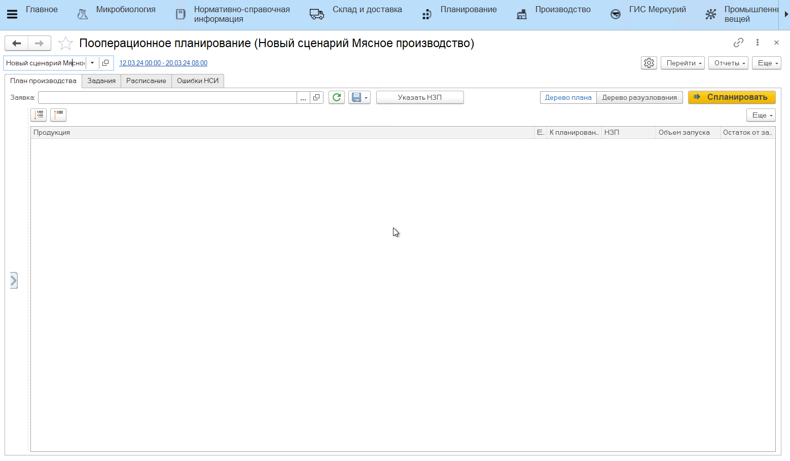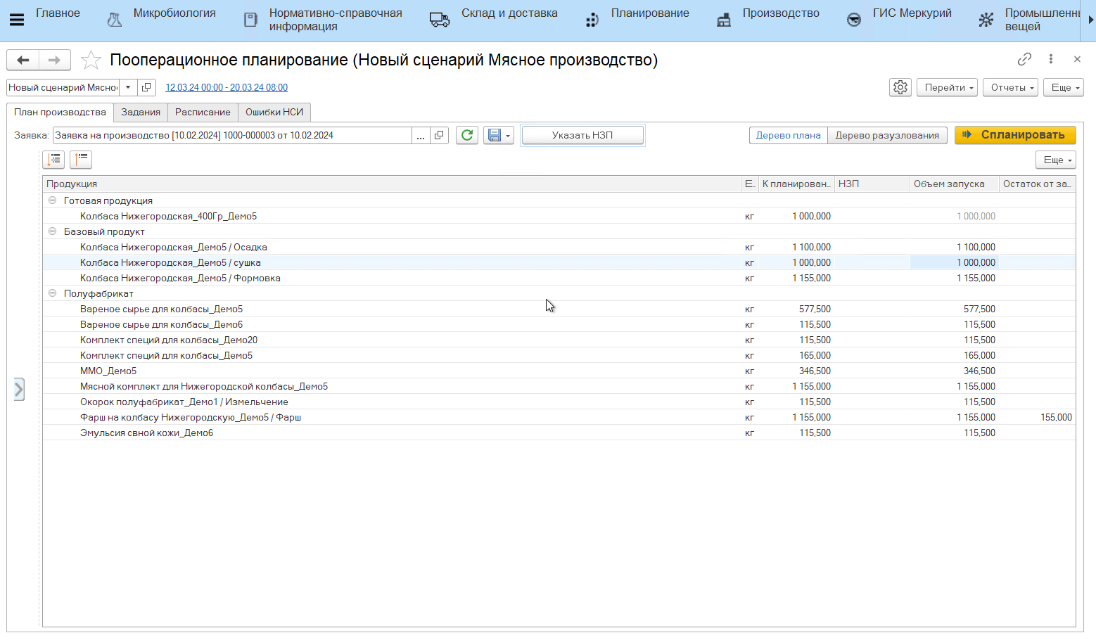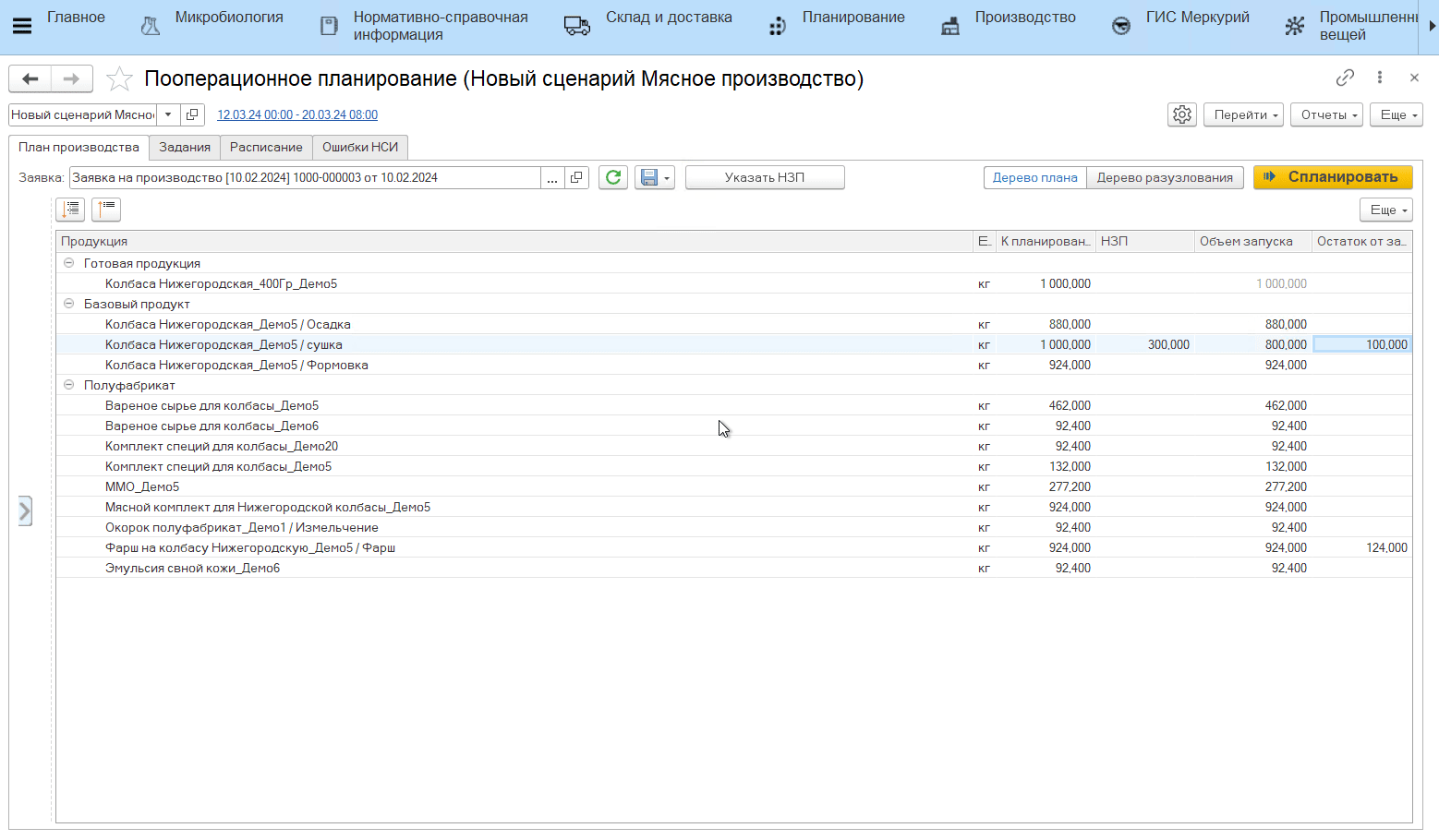 - указать количество базового продукта (если нужно учесть ровно столько) либо оставить максимальное количество - в таком случае в дереве плана будет "взято" столько НЗП, сколько достаточно для производства, а не весь указанный остаток;