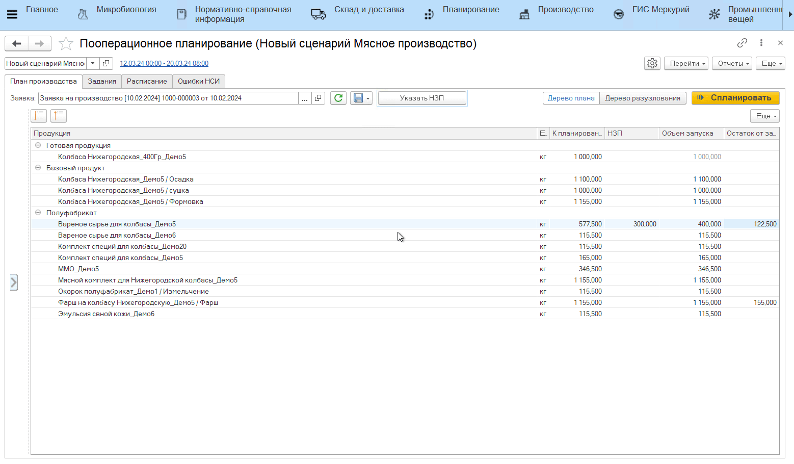 - указать количество полуфабриката (если нужно учесть ровно столько) либо оставить максимальное количество - в таком случае в дереве плана будет "взято" столько НЗП, сколько достаточно для производства, а не весь указанный остаток;