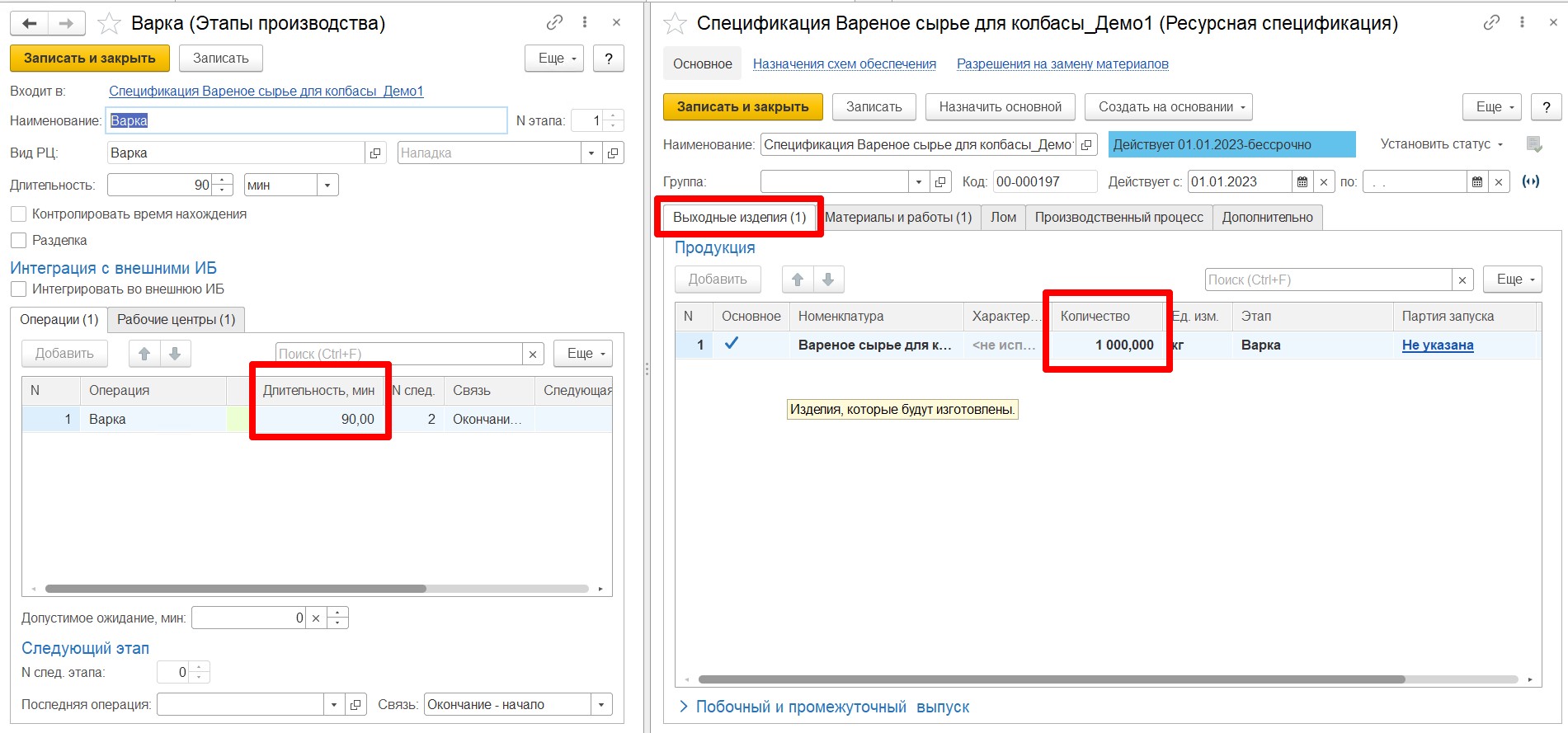 Как система определила, что 476 кг вареного полуфабриката будет изготавливаться 45 мин?