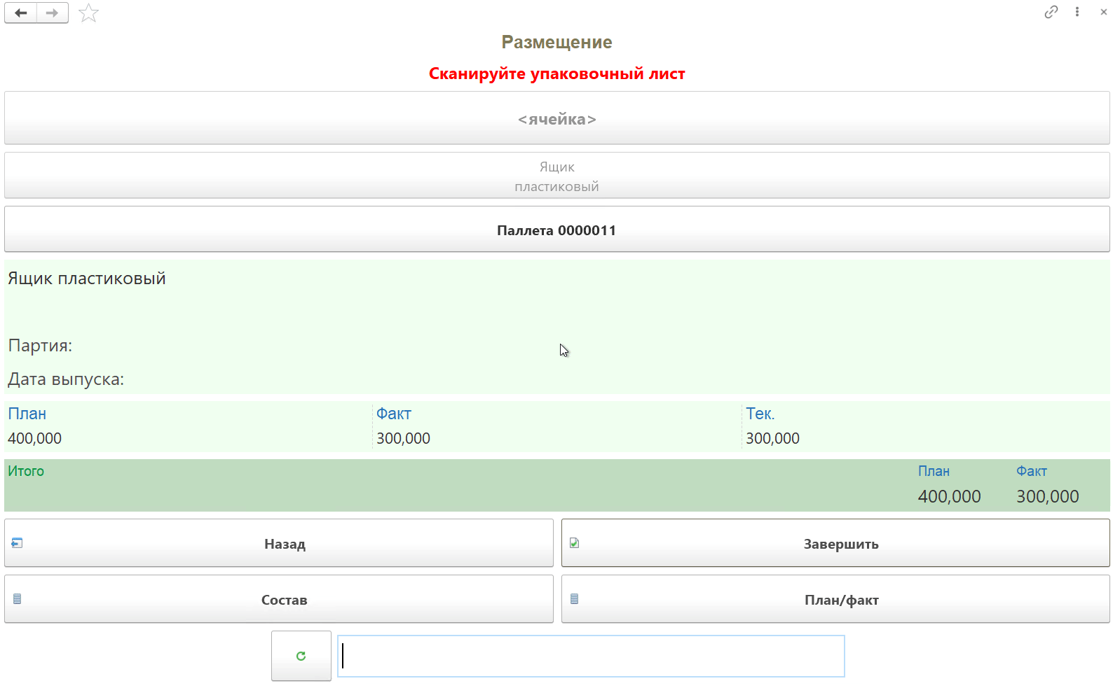 - Автоматически осуществится переход на форму сканирования для выбранной позиции;