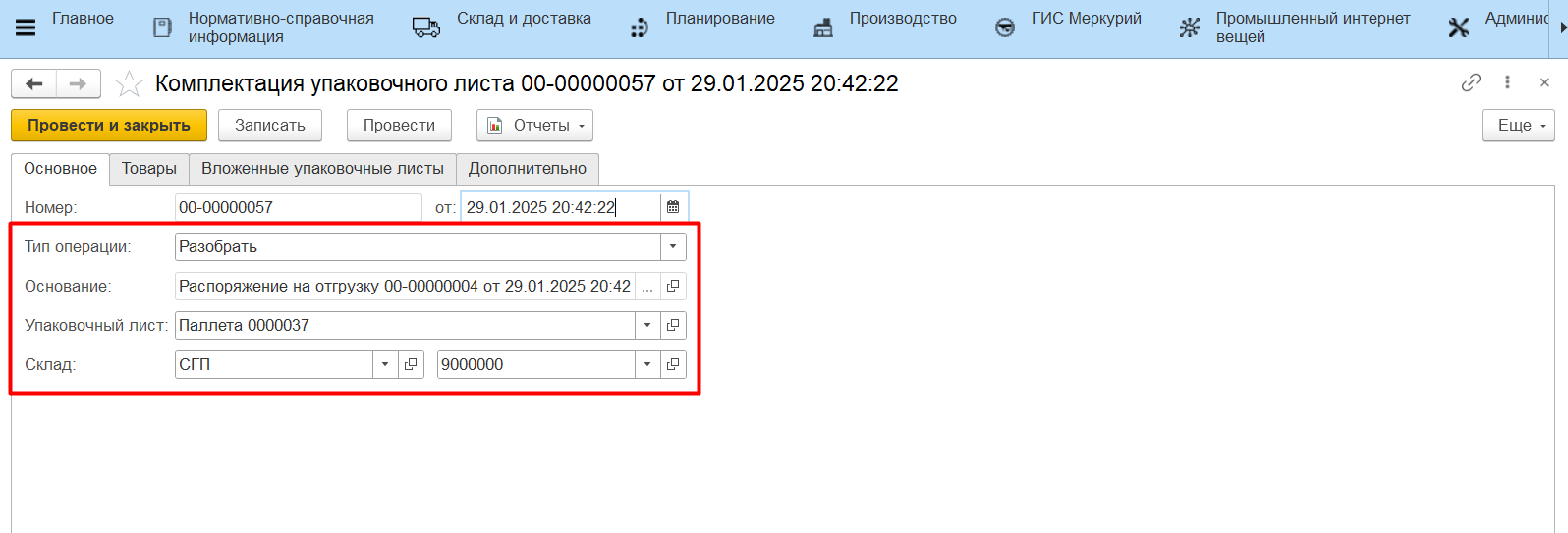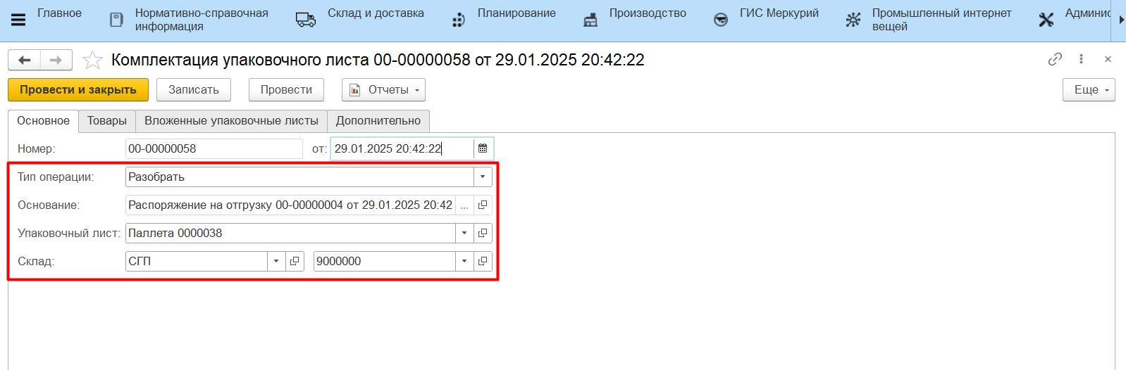 - документы "Комплектация упаковочного листа" с типом "Разобрать", которые очистят состав отгруженных упаковочных листов.