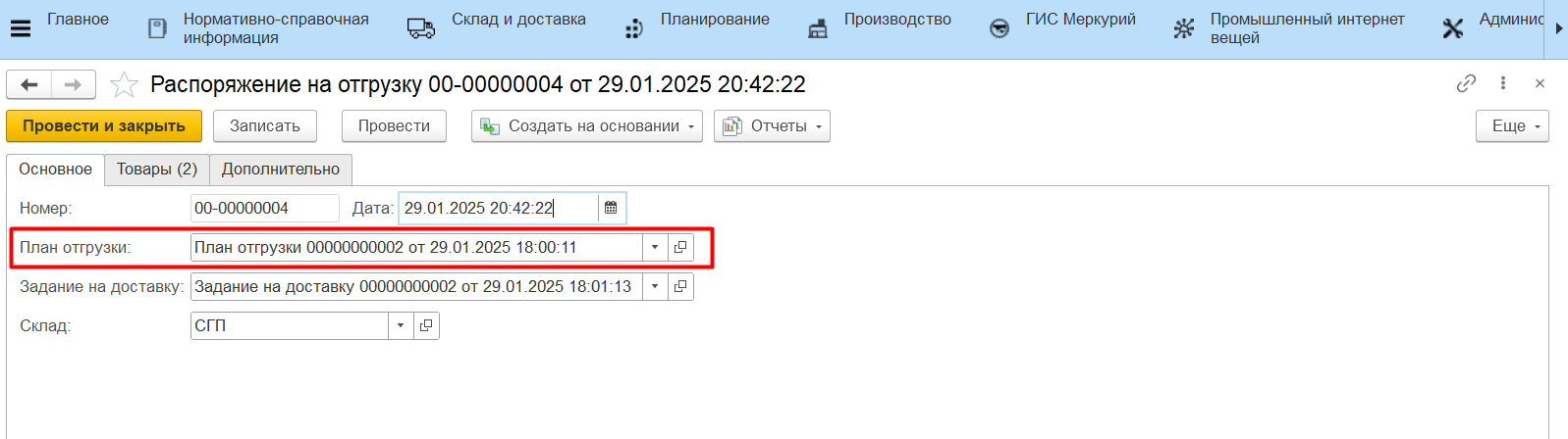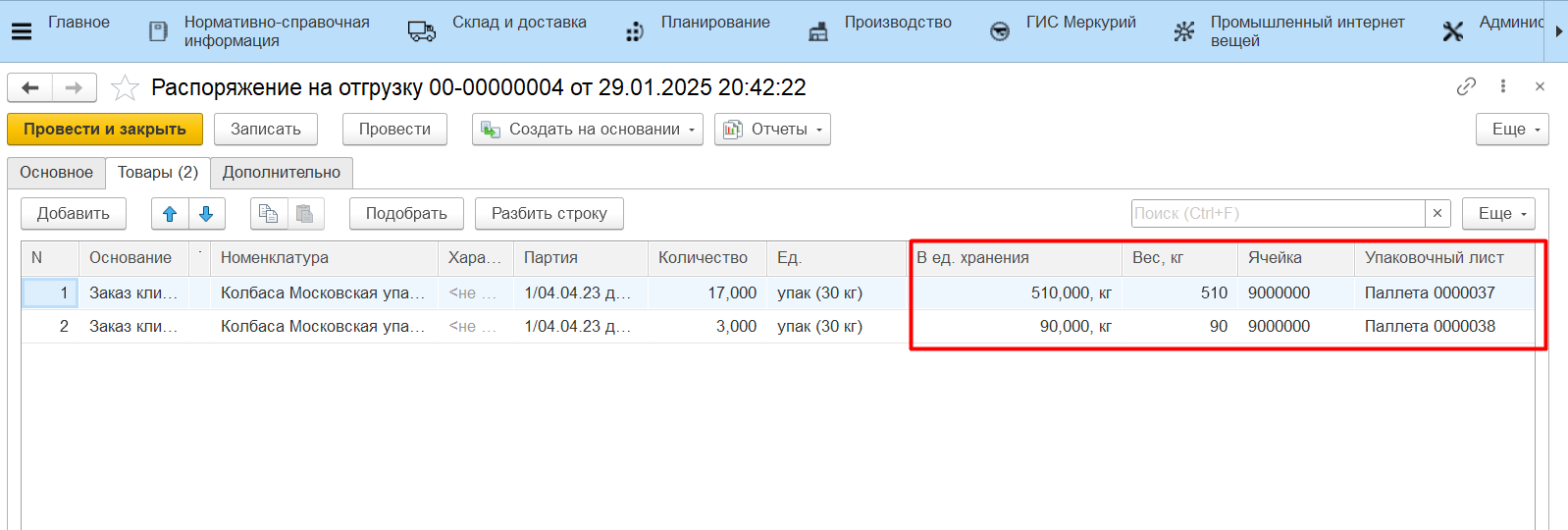 Тогда после завершения отгрузки будет сформирован только документ "Распоряжение на отгрузку", а продукция останется на упаковочных листах.