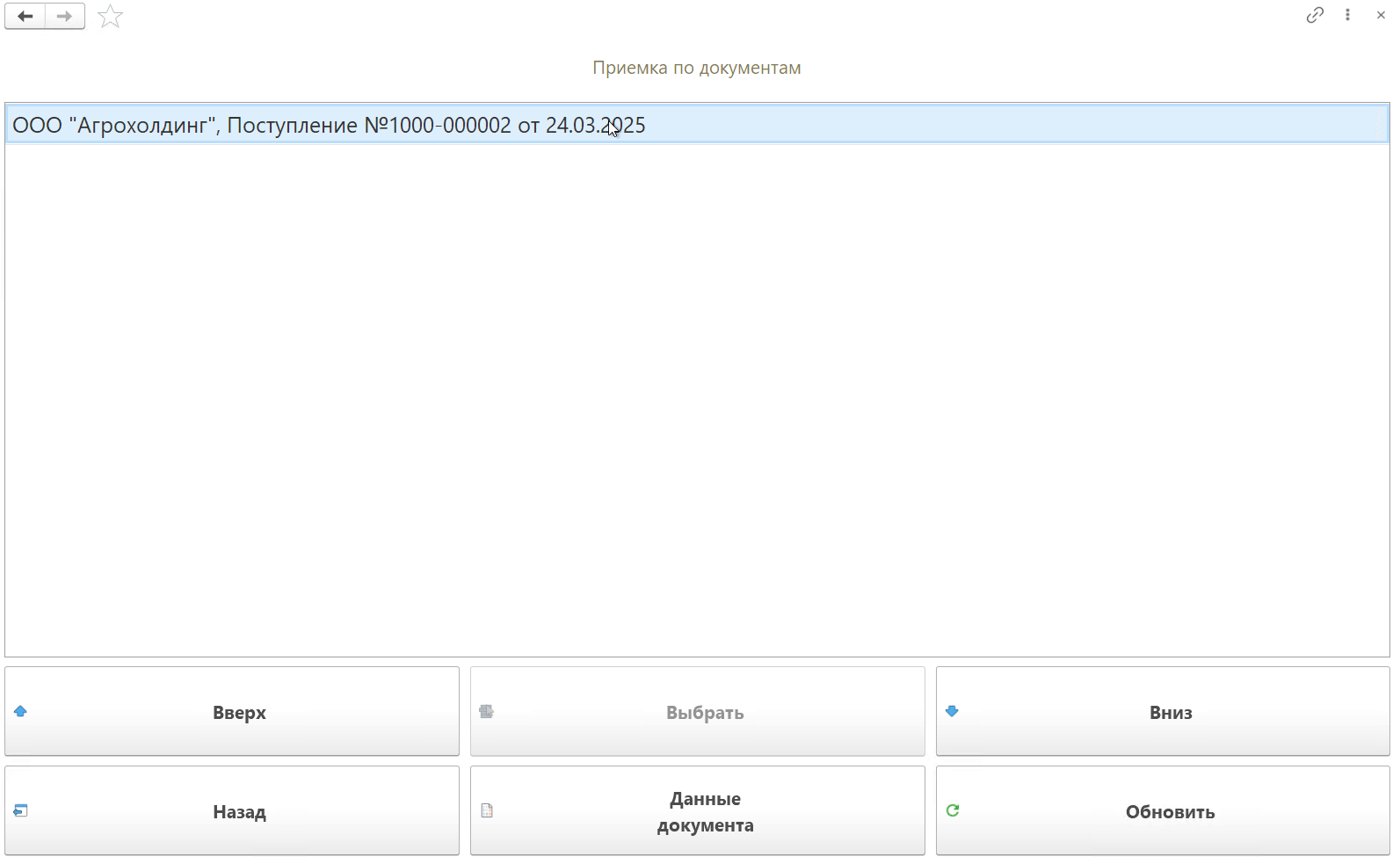 Приемка перечисленной продукции проводится оператором на ТСД по созданному документу планового поступления.