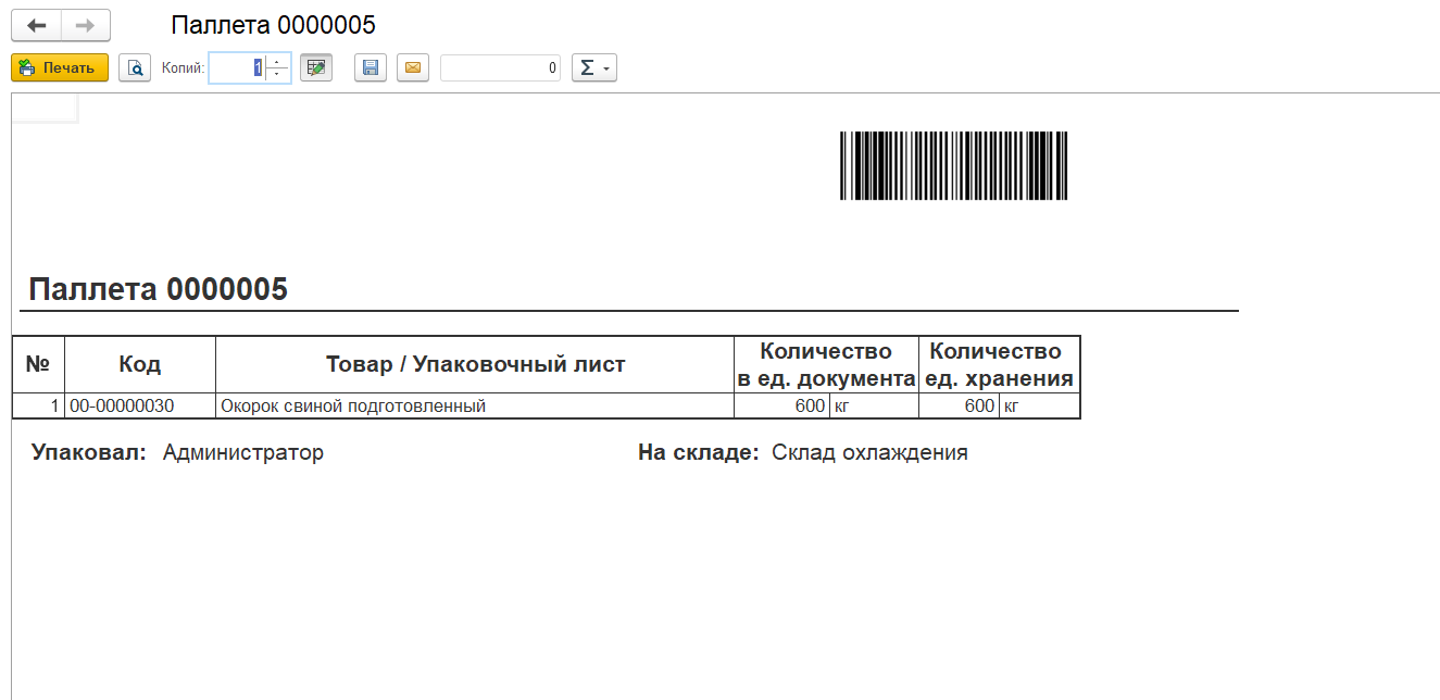 По кнопке "Назад" нужно вернуться на основную форму и нажать кнопку "Завершить". Созданный упаковочный лист будет отправлен на принтер.