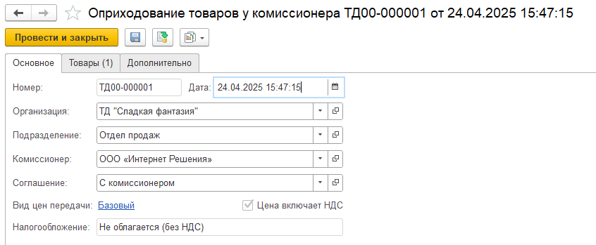 Оприходование товаров у комиссионера