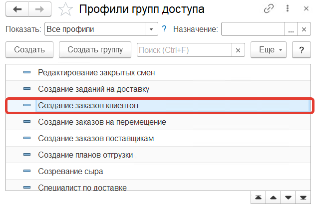 Для пользователей, которые занимаются созданием заказов клиентов в системе создан поставляемый профиль доступа "Создание заказов клиента".