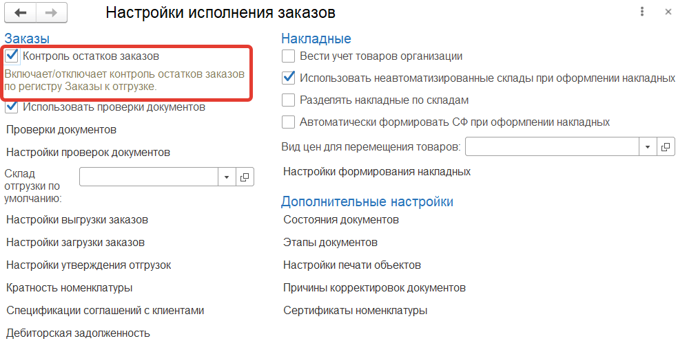Данная настройка не позволяет после оформления по заказу плана отгрузки сделать количество товаров в заказе клиента меньше чем в плане: