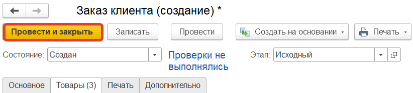 Документ "Заказ клиента" отражает потребность клиента на поставку ему товаров. Они расположены в разделе "Заказы".