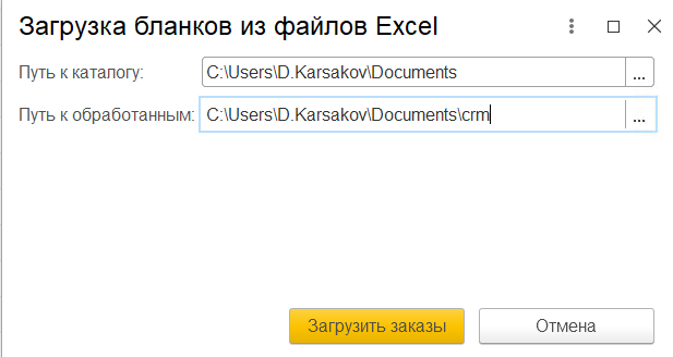 При загрузке бланка указывается каталог, из которого будет загружен бланк и каталог, в который этот бланк будет перемещен после загрузки.
