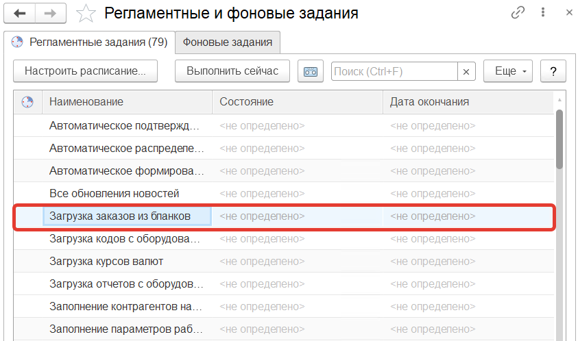При запуске регламентного задания "Загрузка заказов из бланков" в систему загружаются заказы клиентов согласно настройкам.