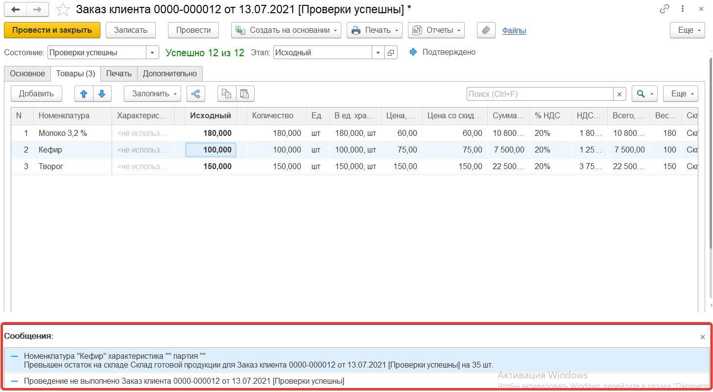 "Контроль остатков заказов" не позволяет после оформления по заказу плана отгрузки сделать количество товаров в заказе клиента меньше чем в плане: