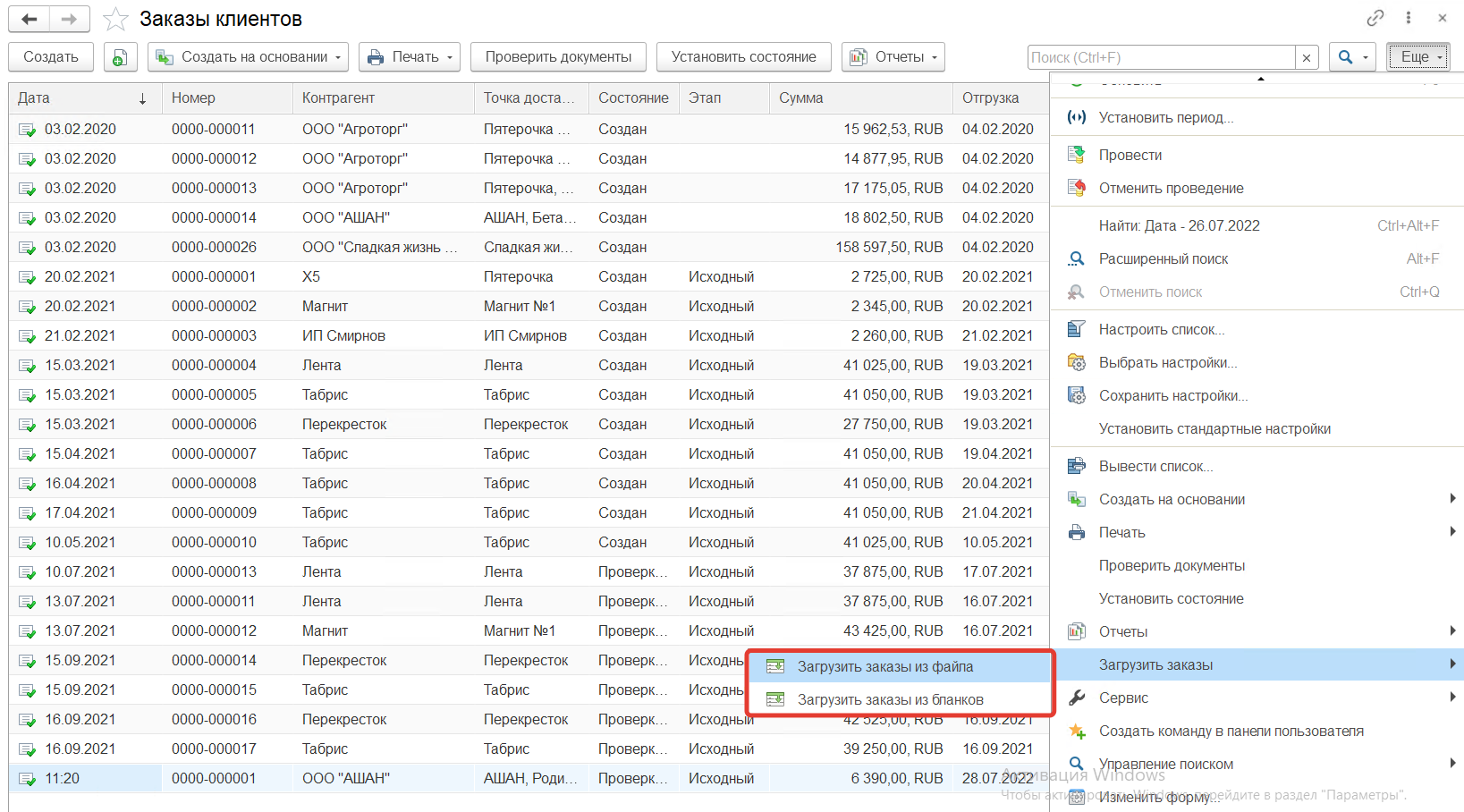Заказы клиентов могут быть загружены регламентным заданием "Загрузка заказов из бланков"