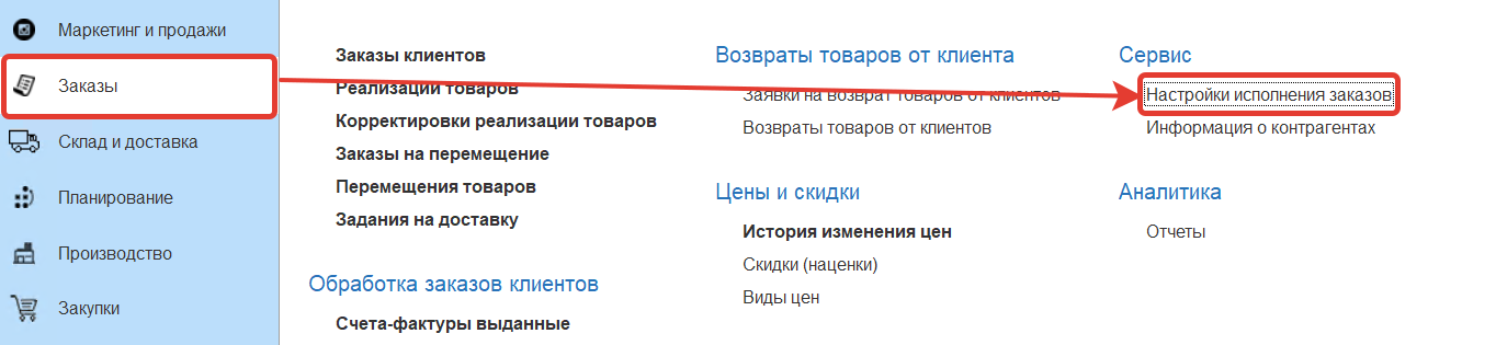 Настройка распространяется на заказы клиентов и заказы на внутреннее потребление.