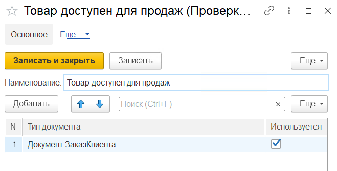Вернемся к заказу и изменим дату отгрузки на 02.10.2020, проведем документ, проверка по доступности товара для продаж не пройдет, так как товар на 02.10.2020 уже выведен из продаж.