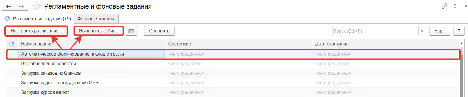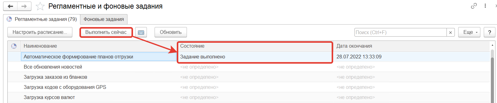 Выполним регламентное задание вручную и проверим сформировавшийся план отгрузки.