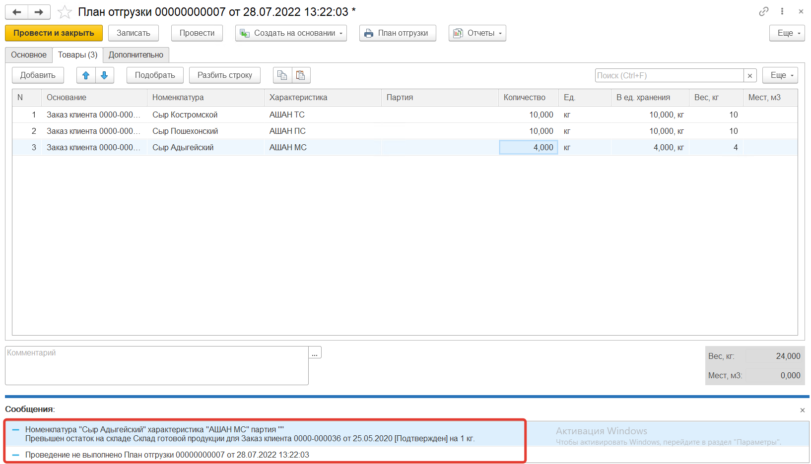 - общее - в этом случае будет сформирован общий план отгрузки для всех выбранных заказов