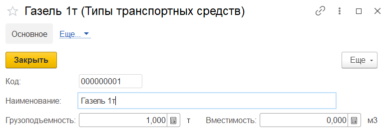 Для транспортной документации производится расчет количества мест и веса (вес брутто = вес товара + вес коробки). Занимаемое количество мест рассчитывается исходя из информации в карточке номенклатуры об объеме, занимаемом товаром. Для типа транспортного средства заполняются грузоподъемность и вместимость.