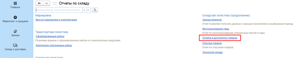 Склад и доставка – Отчеты – Складская логистика (продолжение)