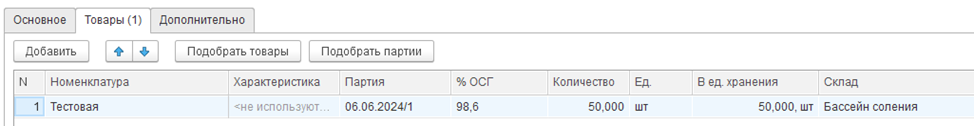 По кнопке «Подобрать партии» партии подберутся с учетом ОСГ назначения.